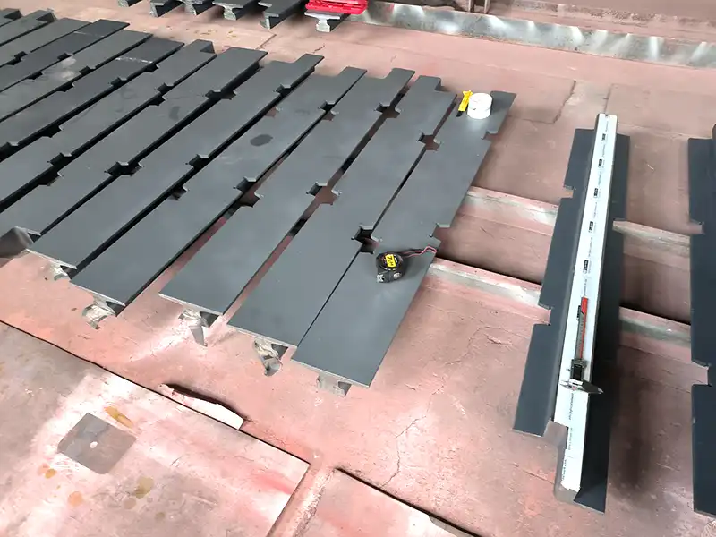 Customized steel sole plates are used to ensure structural stability. When permanent deformation occurs on the groove support surface, two solutions are available: first, adding 1–2 mm thick metal shims as filler material at specific locations; second, machining filler plates of varying thicknesses through milling processes.